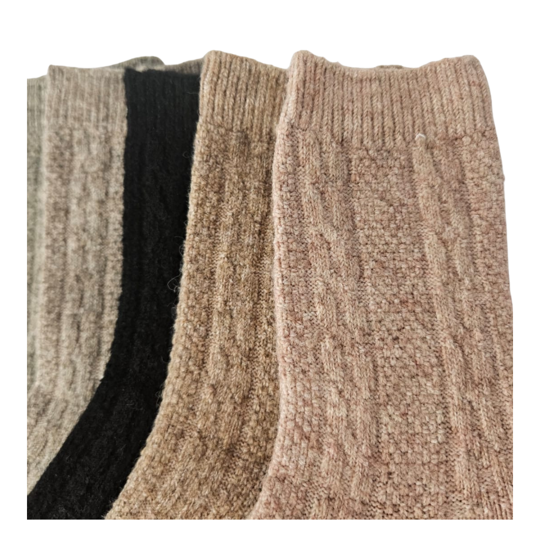 Aceste sosete sunt moi, respirabile si foarte placute la atingere, oferind un confort natural pe durata intregii zile. Datorita compozitiei de inalta calitate, sunt durabile, rezistente la uzura si ideale pentru purtare zilnica in sezonul rece, atat in interior, cat si in exterior.